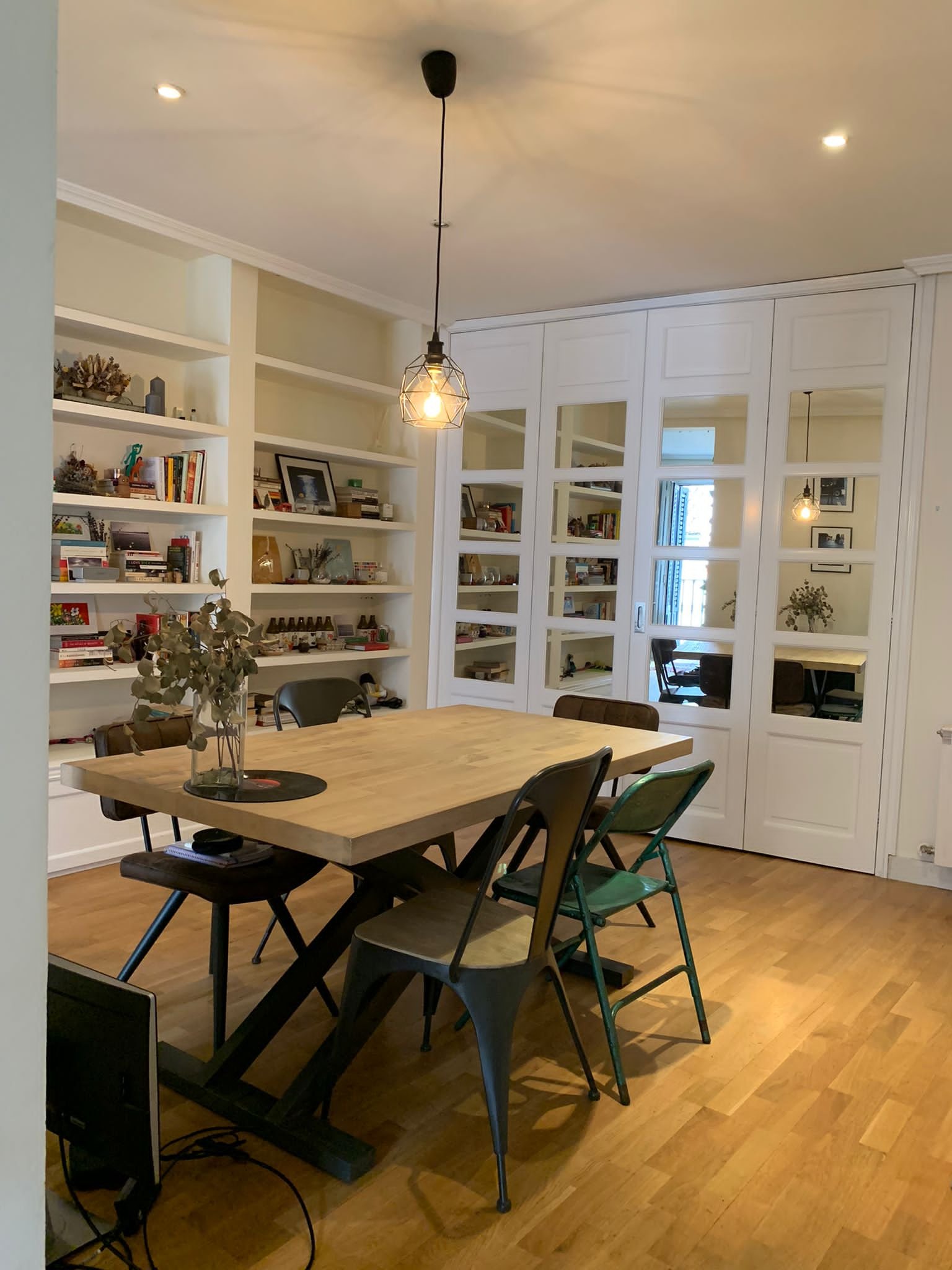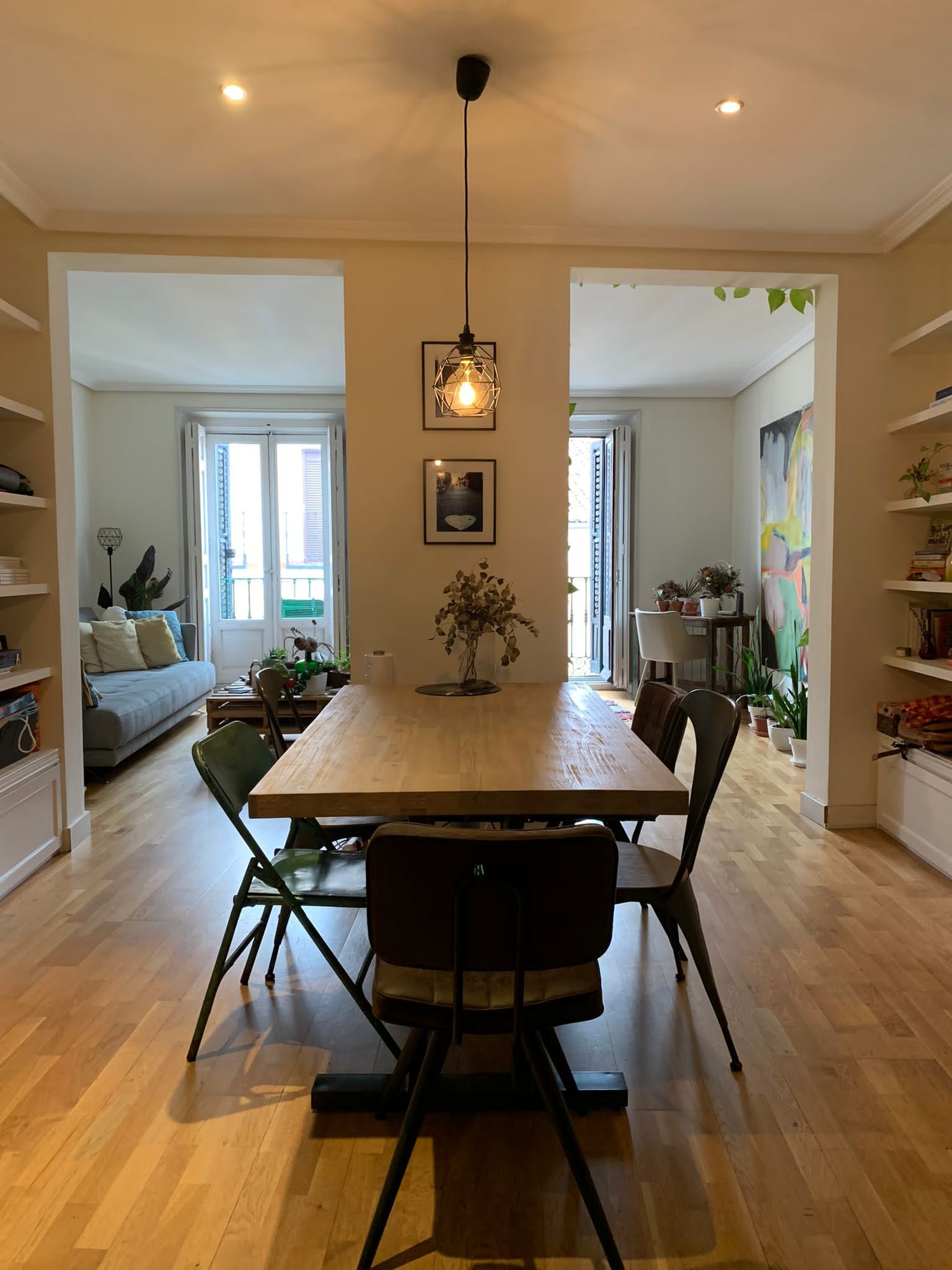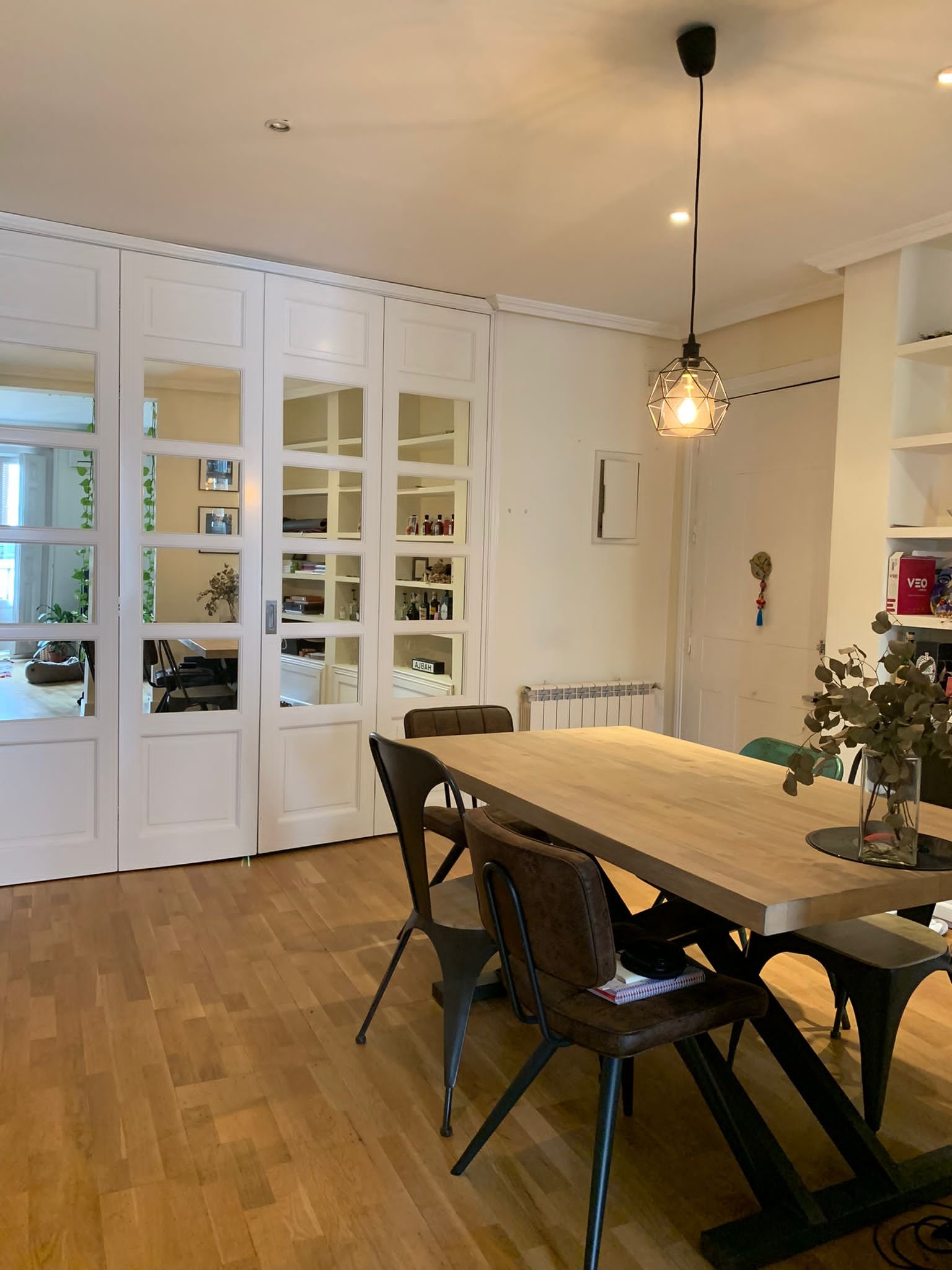 Hall de buen tamaño con biblioteca de obra y espacio para comedor