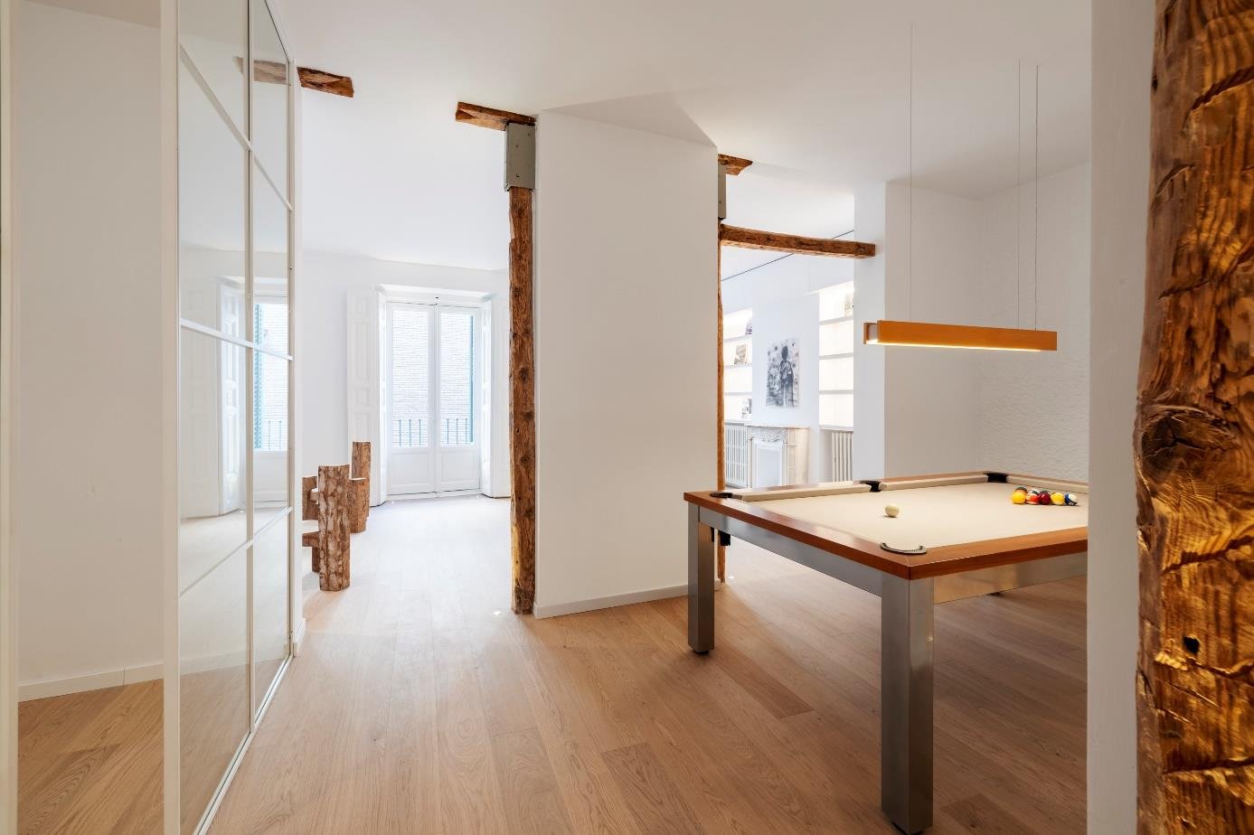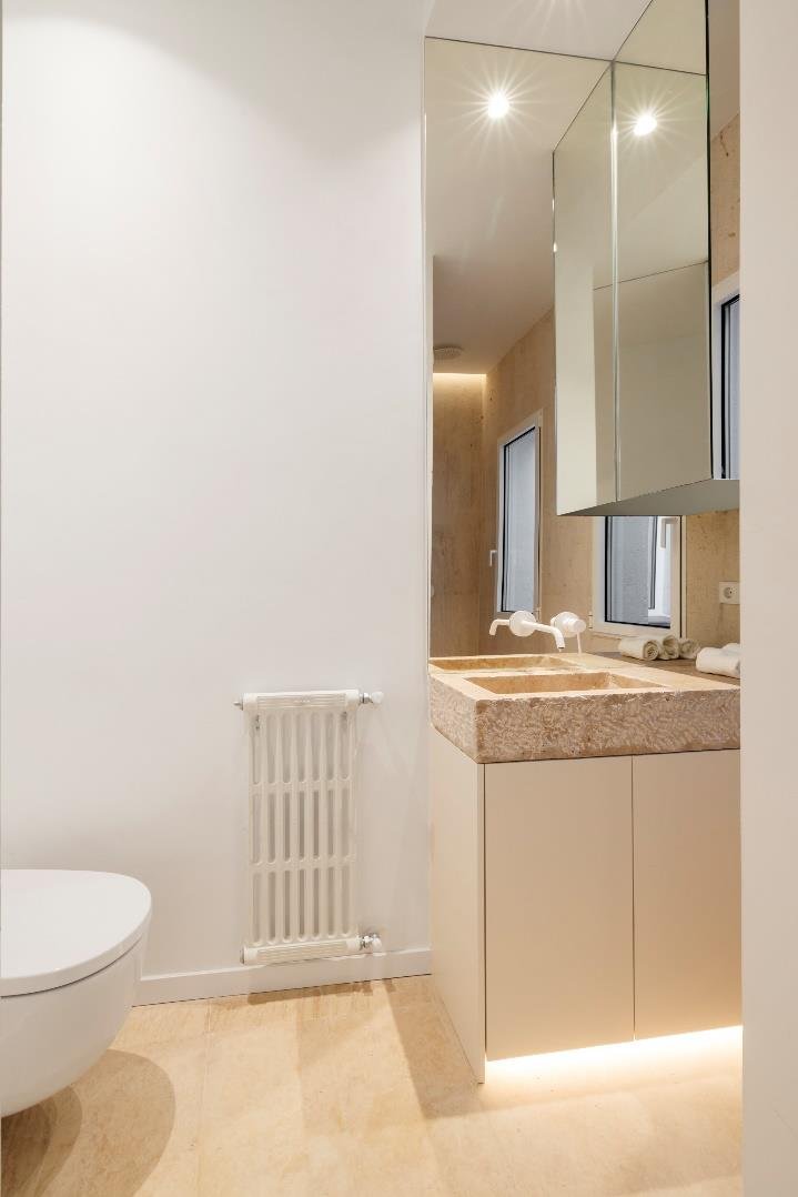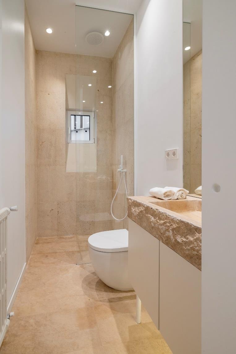 La vivienda es el resultado de un trabajo artístico, en el que se combinan espacios estéticos, armoniosos y funcionales. Es exterior y luminoso, con 3 balcones a la calle, techos de 3,15m de altura y estructura de madera vista original del edificio. Es un piso único, de autor. Se ha diseñado íntegramente a medida: la cocina, las pilas de piedra maciza, el billar que se transforma en mesa de comedor, los armarios, los muebles de los baños, las duchas italianas. Suelo de madera. Hasta el mínimo detalle está diseñado y construido de forma exclusiva. Parte de los muebles está hecha a medida con el material reciclado de la reforma del piso. Se ha prestado particular atención para elaborar un sistema de iluminación cálido, con detalles y de bajo consumo. Distribución: Gran openspace cocina abierta-comedor-salón, 4 dormitorios con 4 baños (3 en suite). Ascensor, aire acondicionado, calefacción individual por gas. Comunidad: 75€/mes, IBI: 1.300€/año