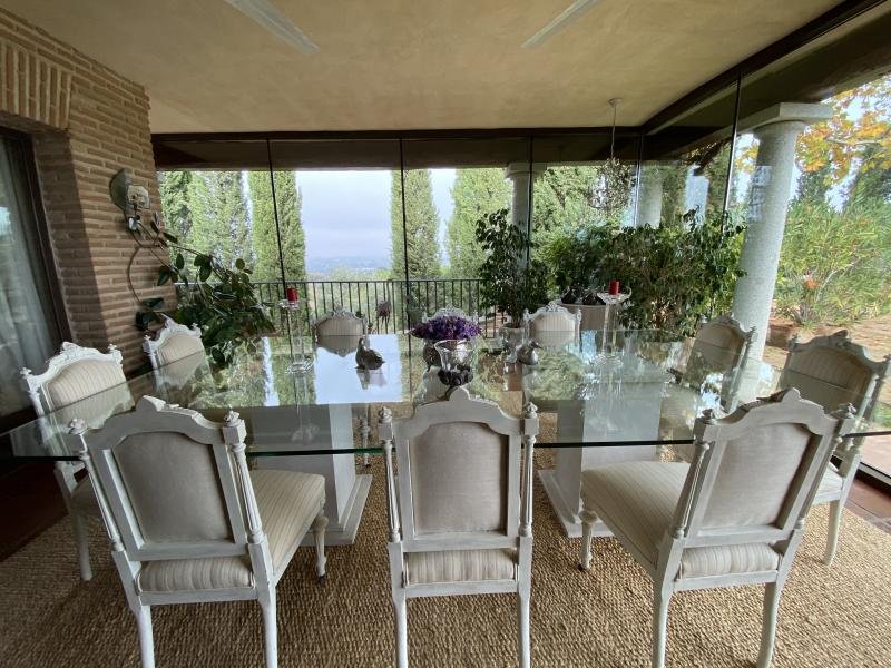 Espectaculares vistas a la ciudad de Toledo, parcela con olivos, frutales y terrazas. Maravilloso jardín con fuente y varios rincones con mucho encanto. En planta baja gran hall de entrada, amplio salón con grandes ventanales y salida a terraza cubierta y al jardín, comedor independiente con salida a jardín. Dormitorio principal en suite con vestidor y baño, aseo de visitas, amplia cocina con comedor de diario, lavadero, cuarto de plancha y despensas. Dos dormitorios con 1 baño, sala de tele, otros dos dormitorios con estar y 1 baño más. Estudio con vistas arriba. Tiene un apartamento independiente para guardeses con estar 1 dormitorio y 1 baño. Trastero grande, 2 Garajes Y Piscina Calefacción por suelo radiante, cámaras de seguridad, pozo de riego, acuerdo autorizado para varios cigarrales que sube el agua del rio Tajo. 1900 € de gastos de comunidad