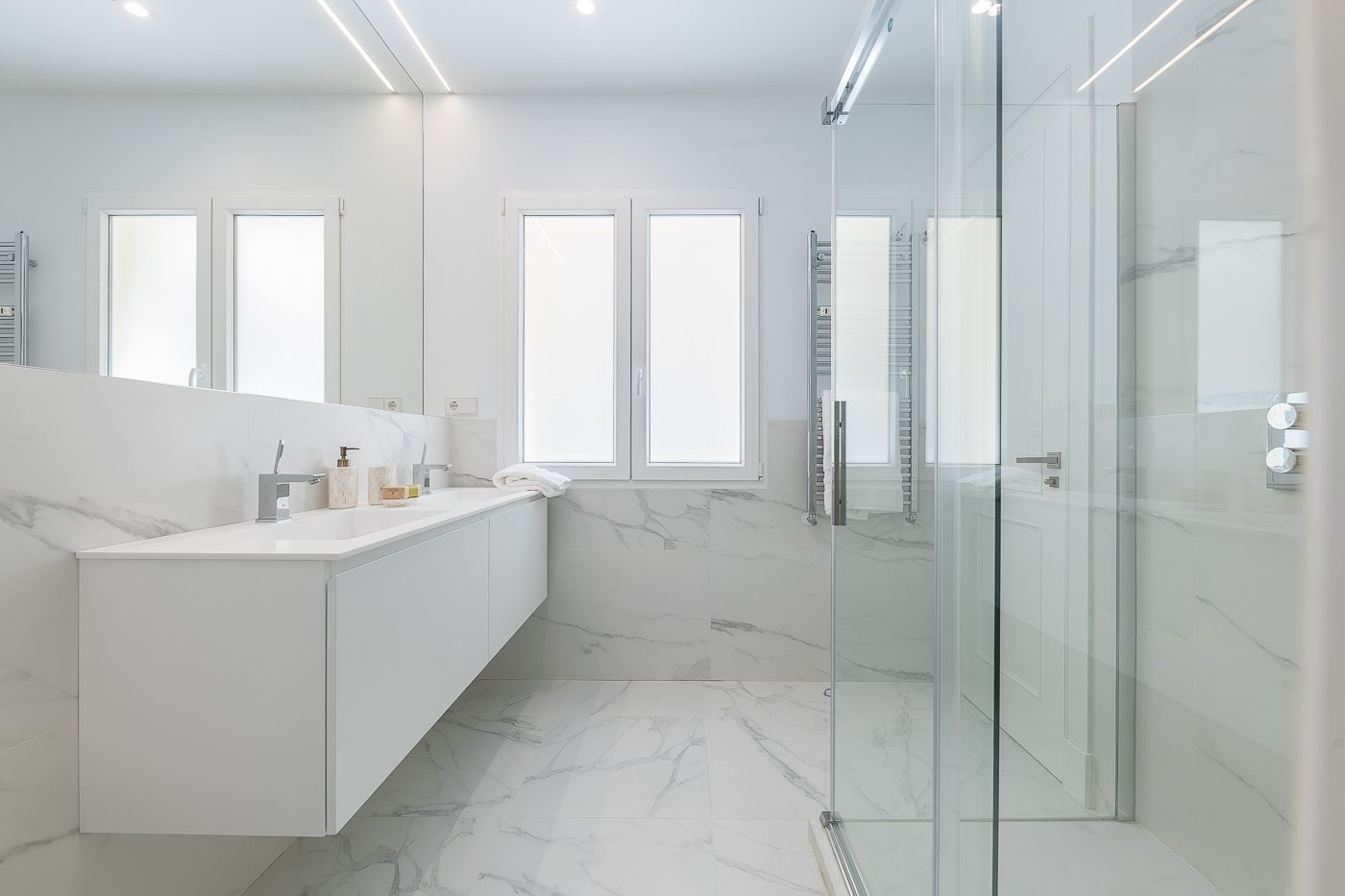 Suelos de madera natural en espiga, aire acondicionado en toda la vivienda. Molduras en techos y paredes. La calefacción es central con contadores individual.