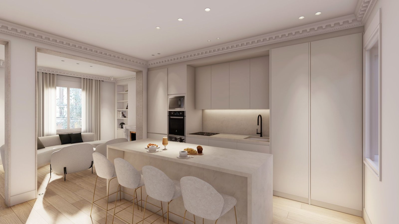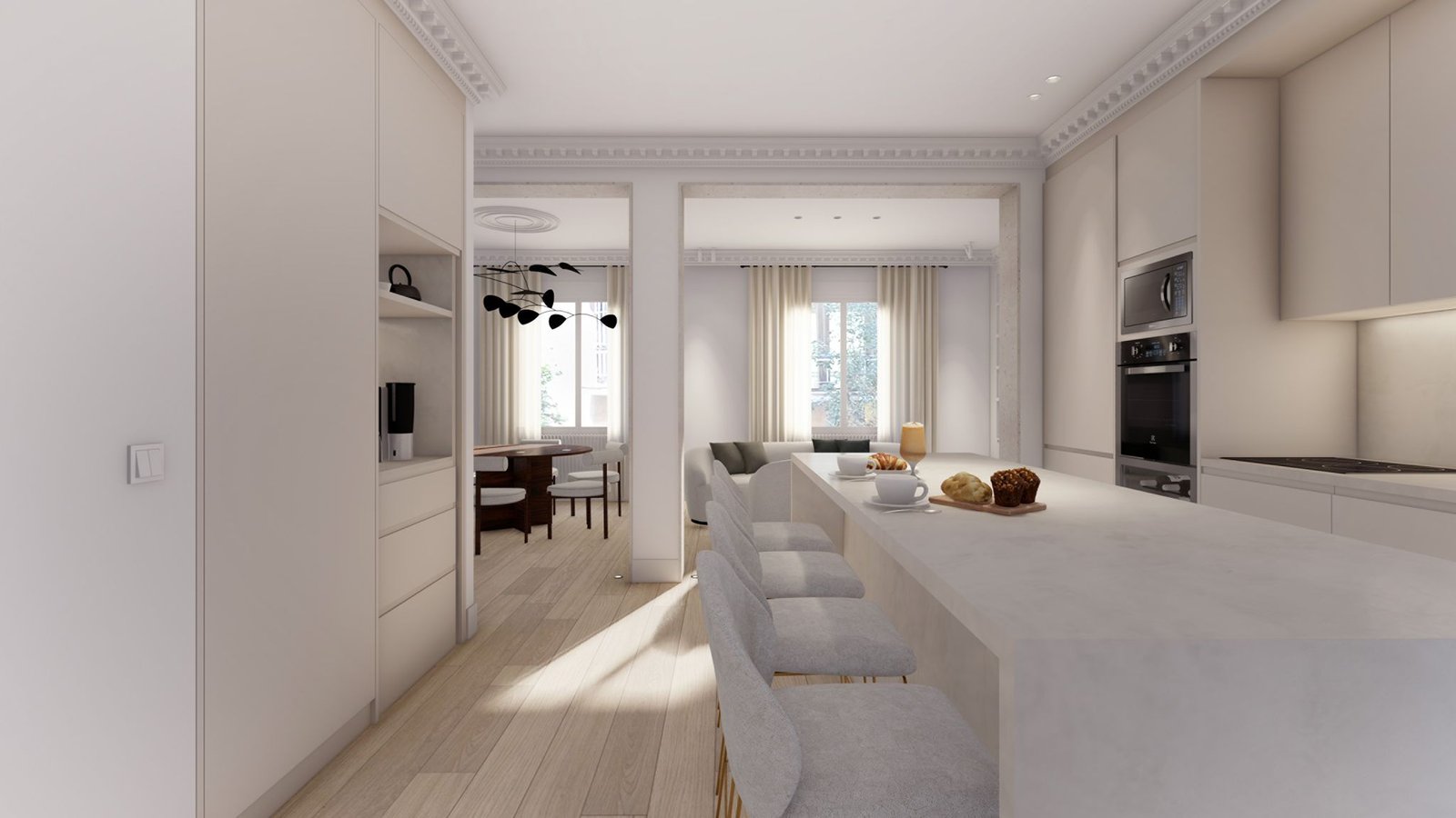 Piso completamente reformado con fecha de fin de obra en Octubre. Estupendo piso, de fachada clasica, se entrega completamente reformado a estrenar y amueblado con 3 ventanas a la calle y techos de 3 metros de altura. Cuenta con un trastero. Gran salón exterior con dos ventanales a calle, comedor, cocina abierta, 3 dormitorios en suite , aseo de cortesía y lavandería. IBI 1.428 euros año Comunidad 274 euros mes
